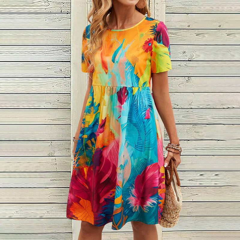 Camila - Casual V-neck Side Split Tropical Beach Dress